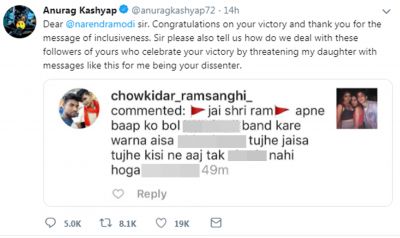 Modi Bhakt Threatens Anurag Kashyap S Daughter Filmmaker Complains Narendra Modi Neither left nor right or centre.